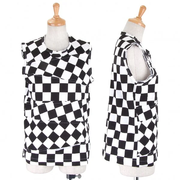 トリコ コムデギャルソンtricot COMME des GARCONS ブロックチェック切替ノースリーブ 白黒M位