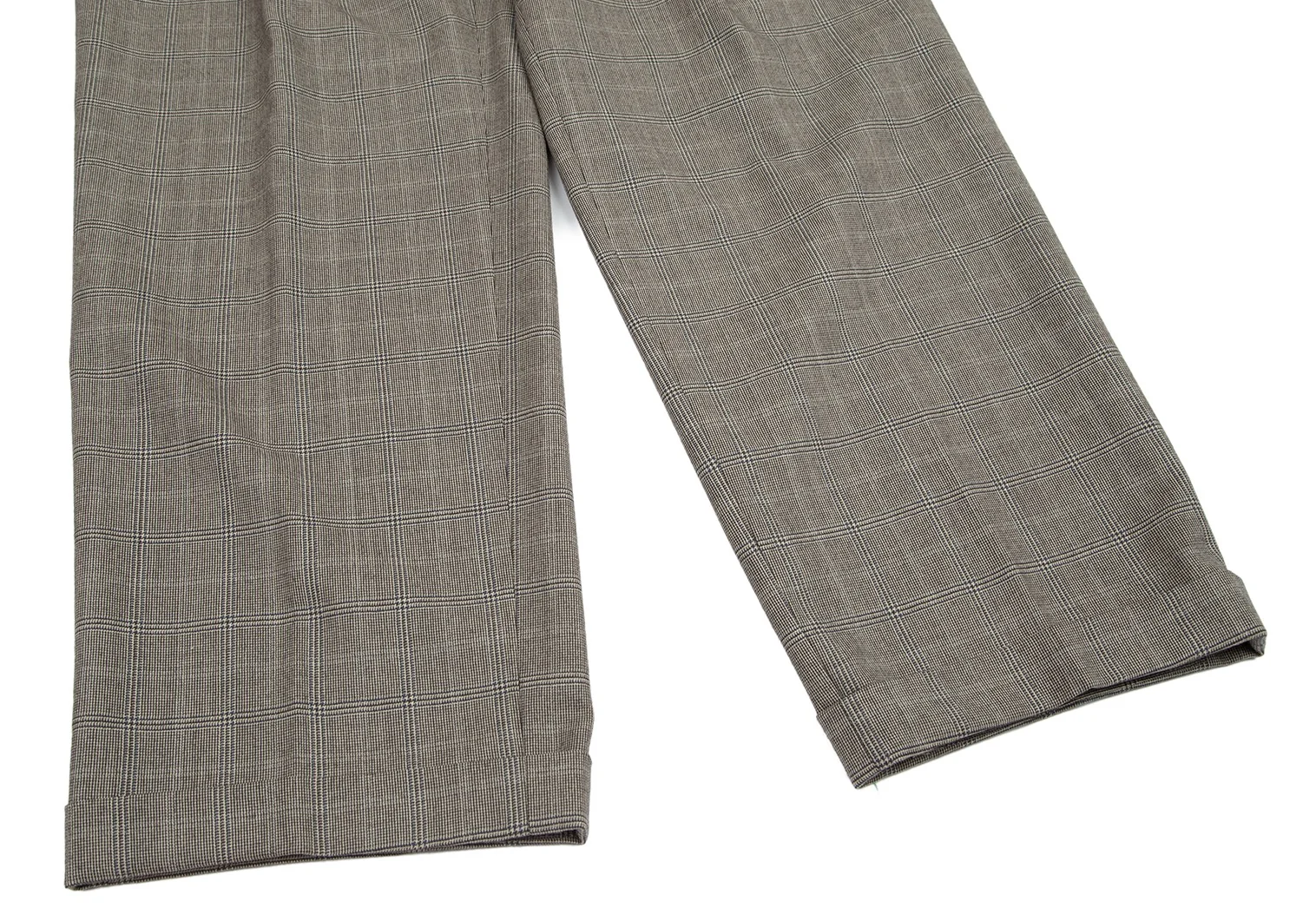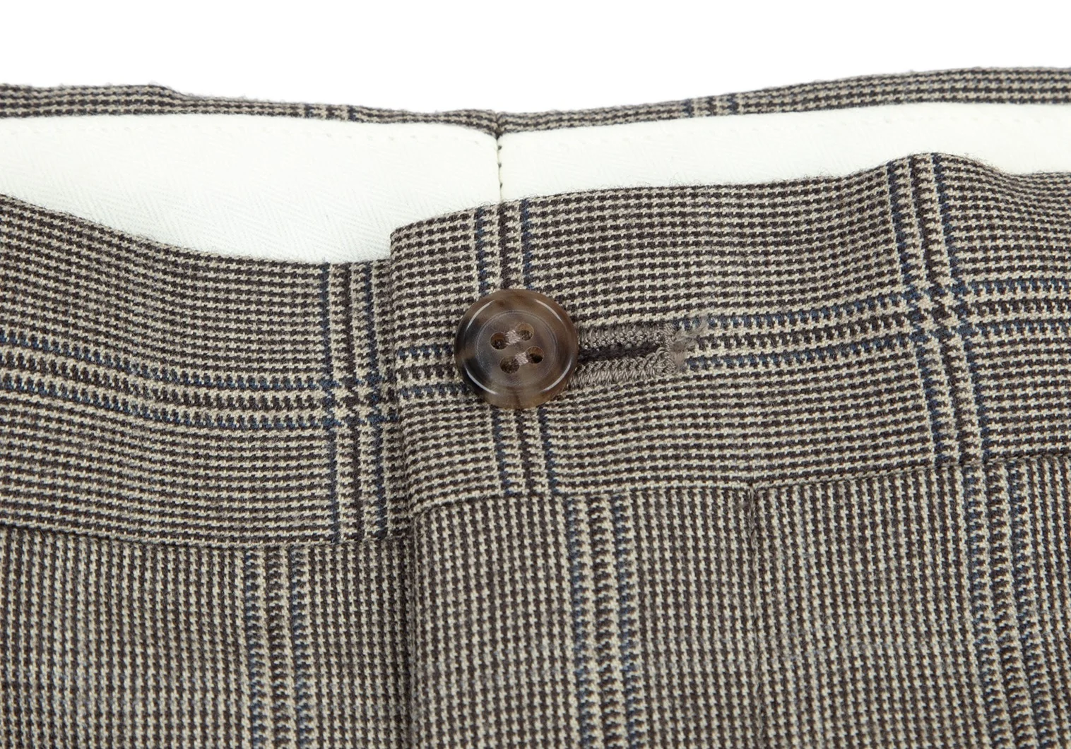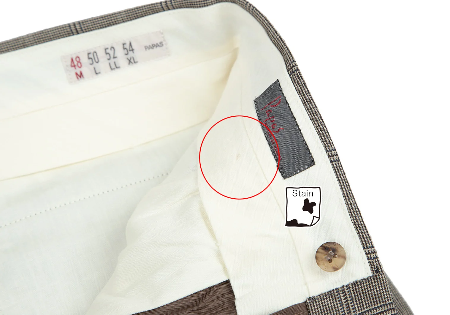 パパスPapas カシミヤ混グレンチェックウールパンツ モカ茶48M