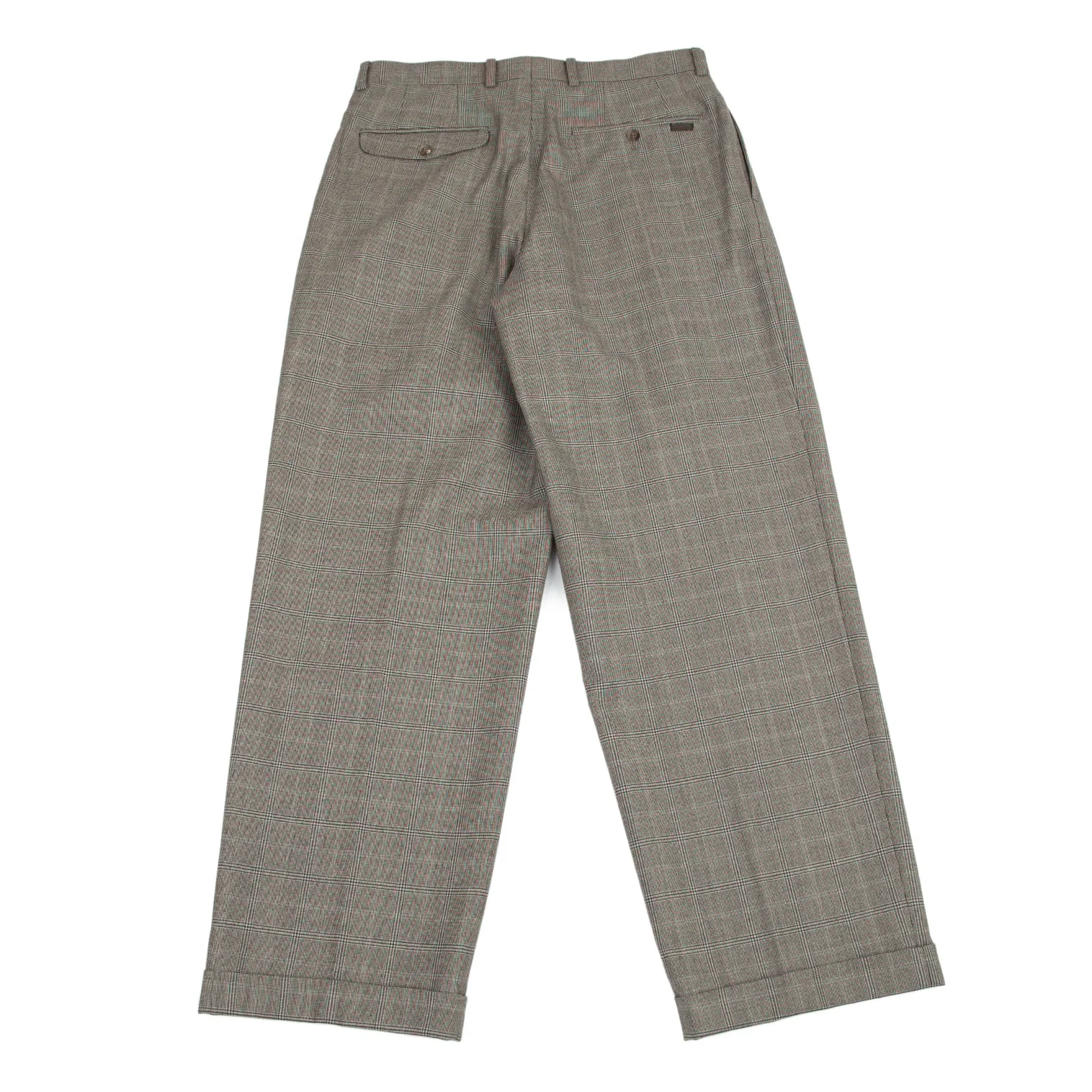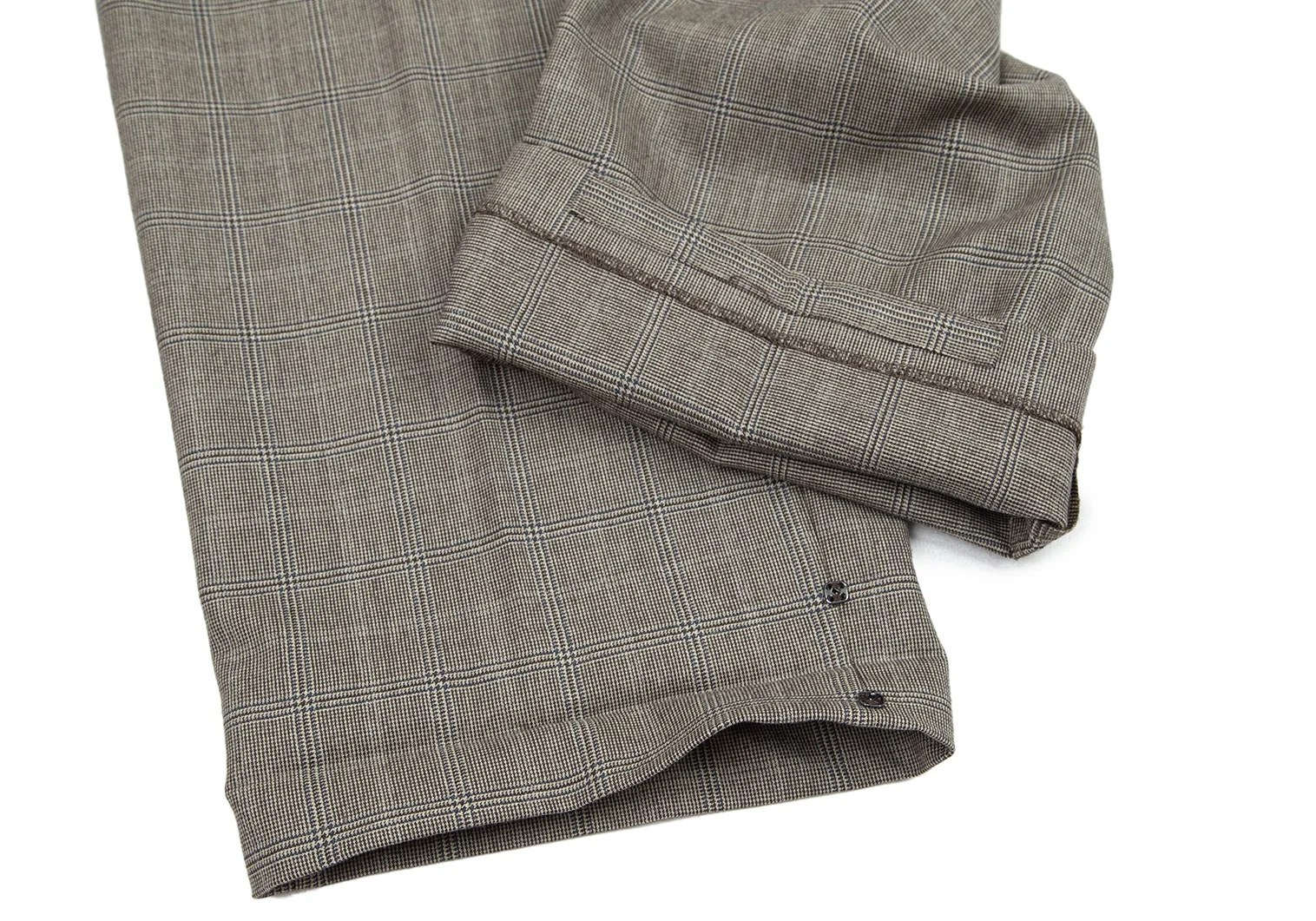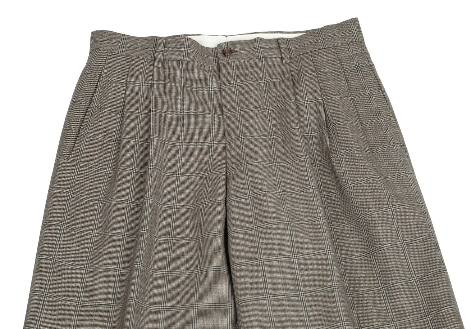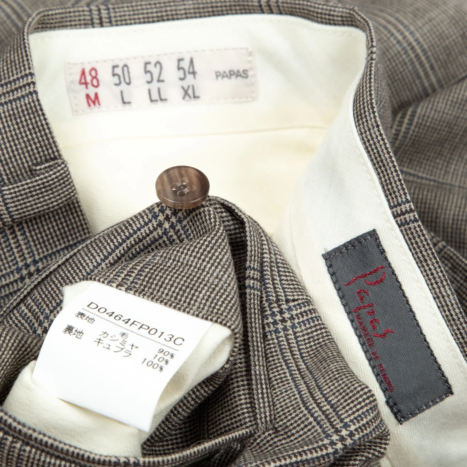 パパスPapas カシミヤ混グレンチェックウールパンツ モカ茶48M