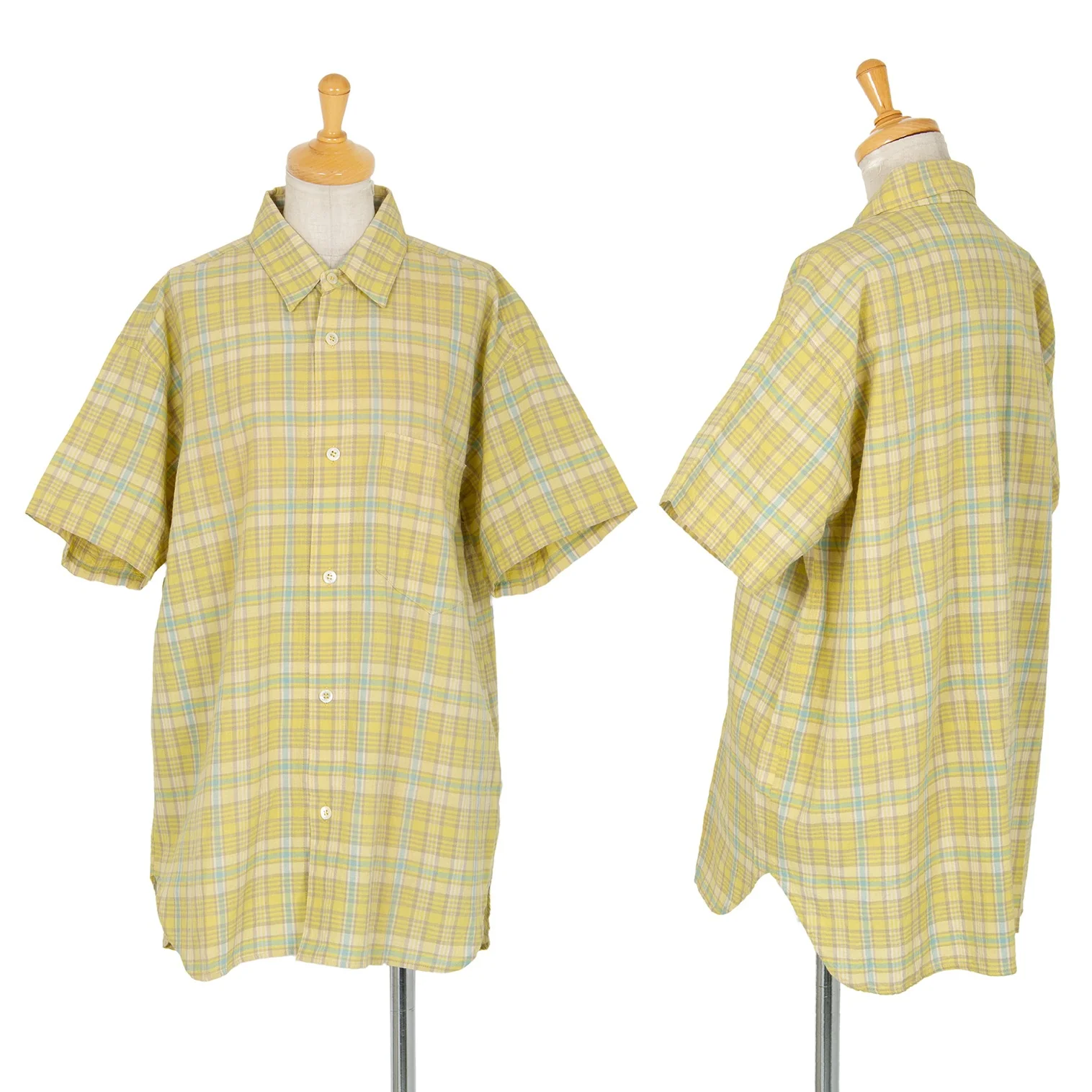 ハイスポーティングギア ミヤケデザインスタジオHAI SPORTING GEAR MIYAKE DESIGN STUDIO コットンリネンチェック半袖シャツ 黄他M